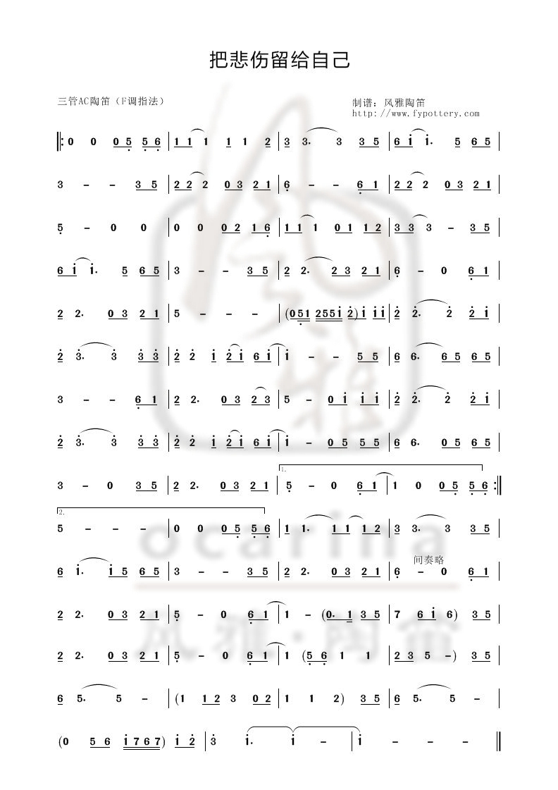 【把悲伤留给自己】曲谱