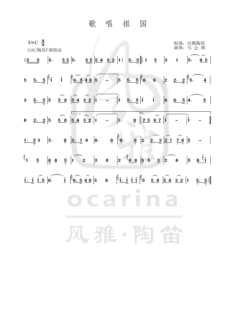 《歌唱祖国》曲谱