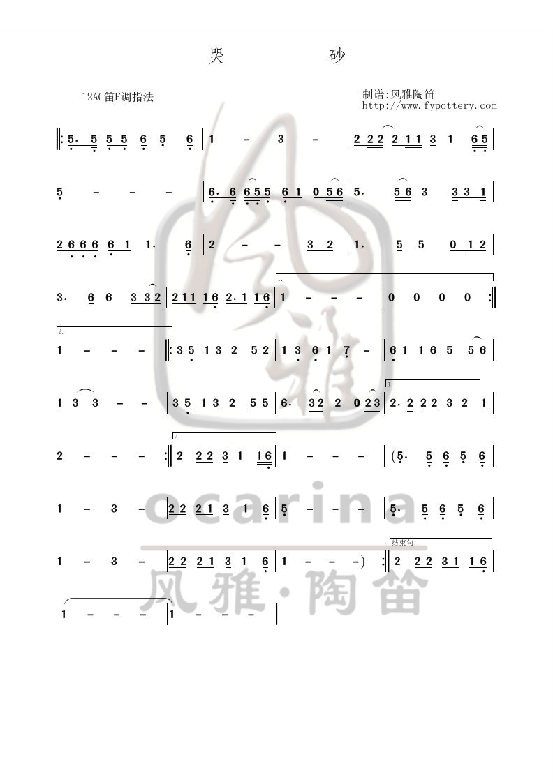 【哭砂】曲谱
