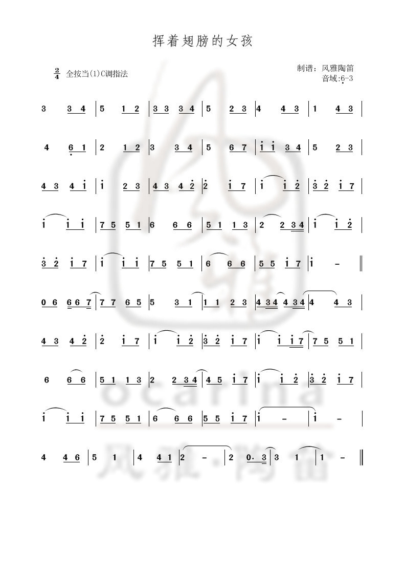 【挥着翅膀的女孩】曲谱