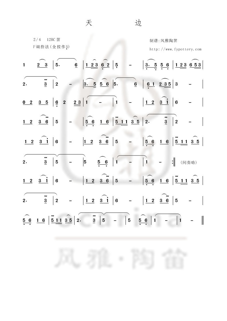 【天边】曲谱