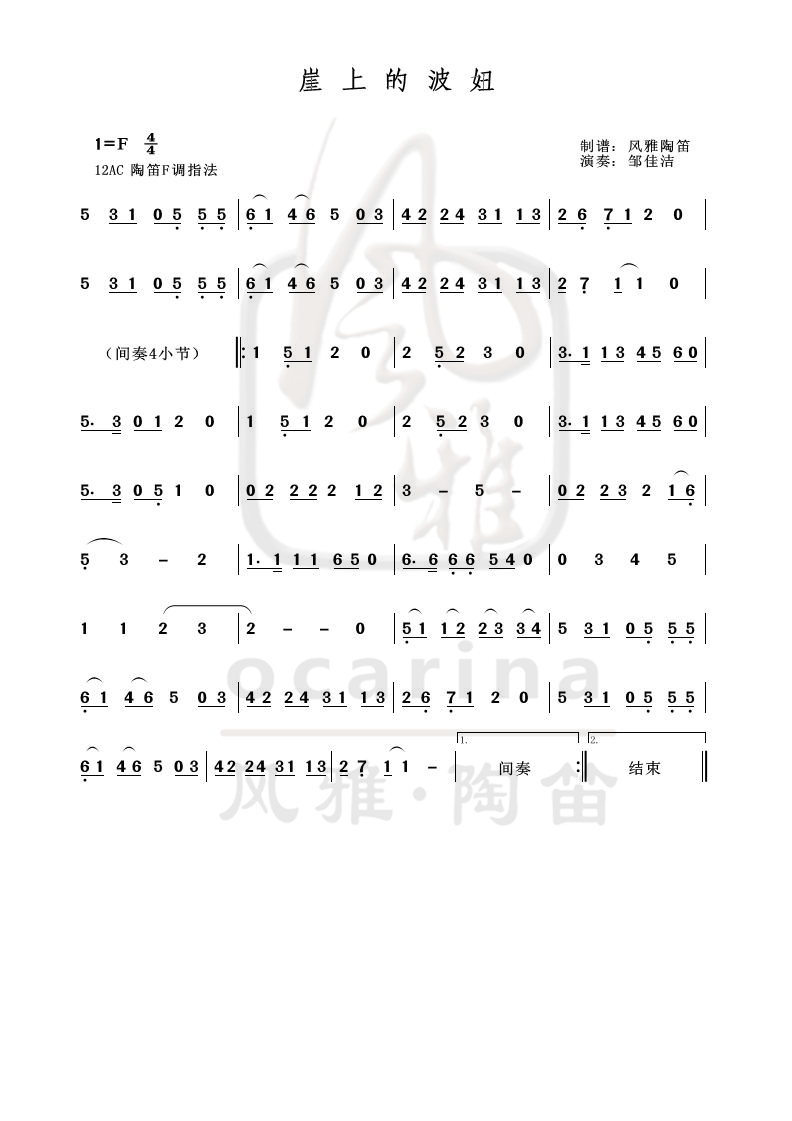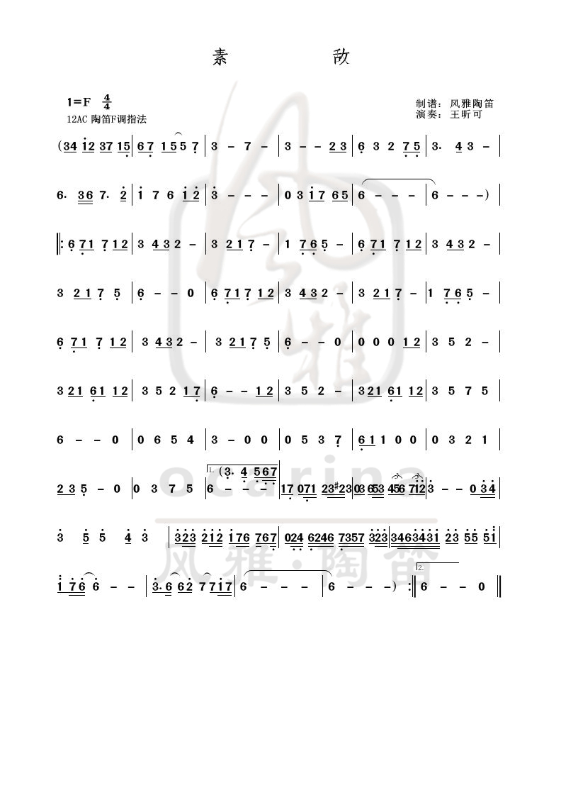【桃花瑶】曲谱