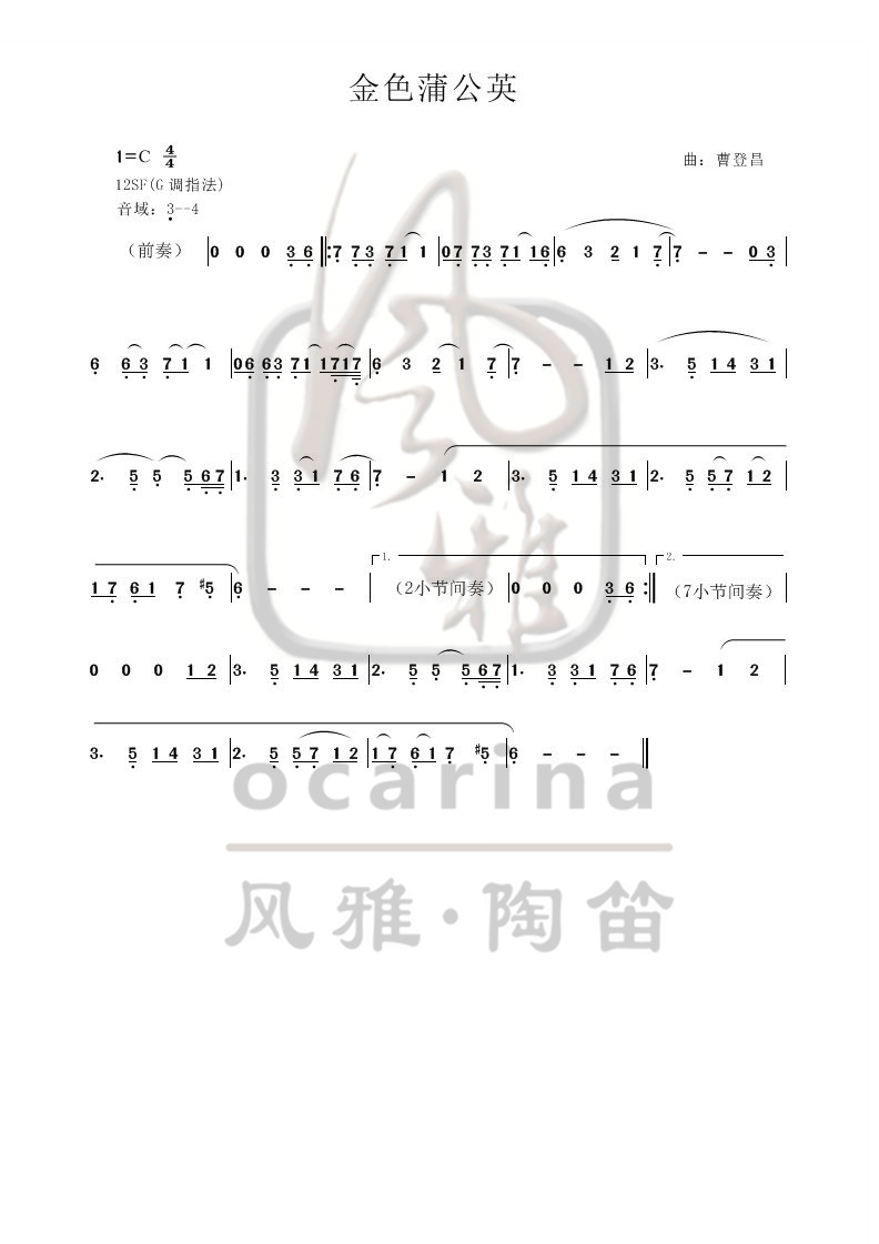 《金色蒲公英》曲谱