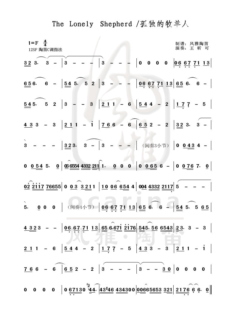 《The Lonely Shepherd孤独的牧羊人》曲谱