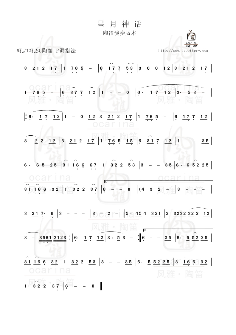 【星月神话】曲谱