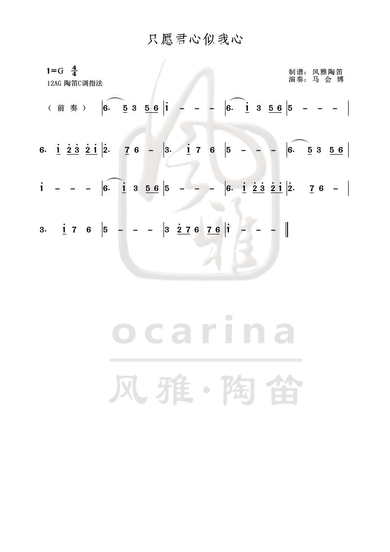 《只愿君心似我心》曲谱