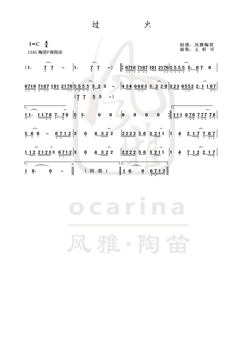 《过火》曲谱