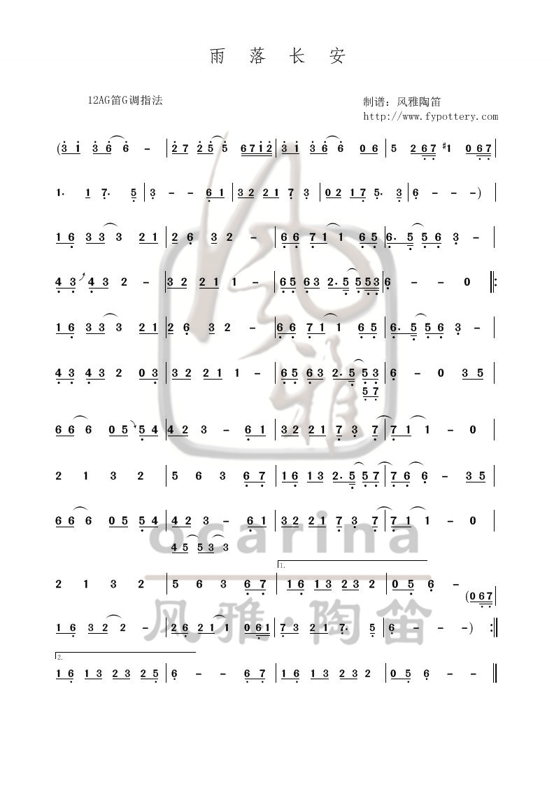 【雨落长安】曲谱