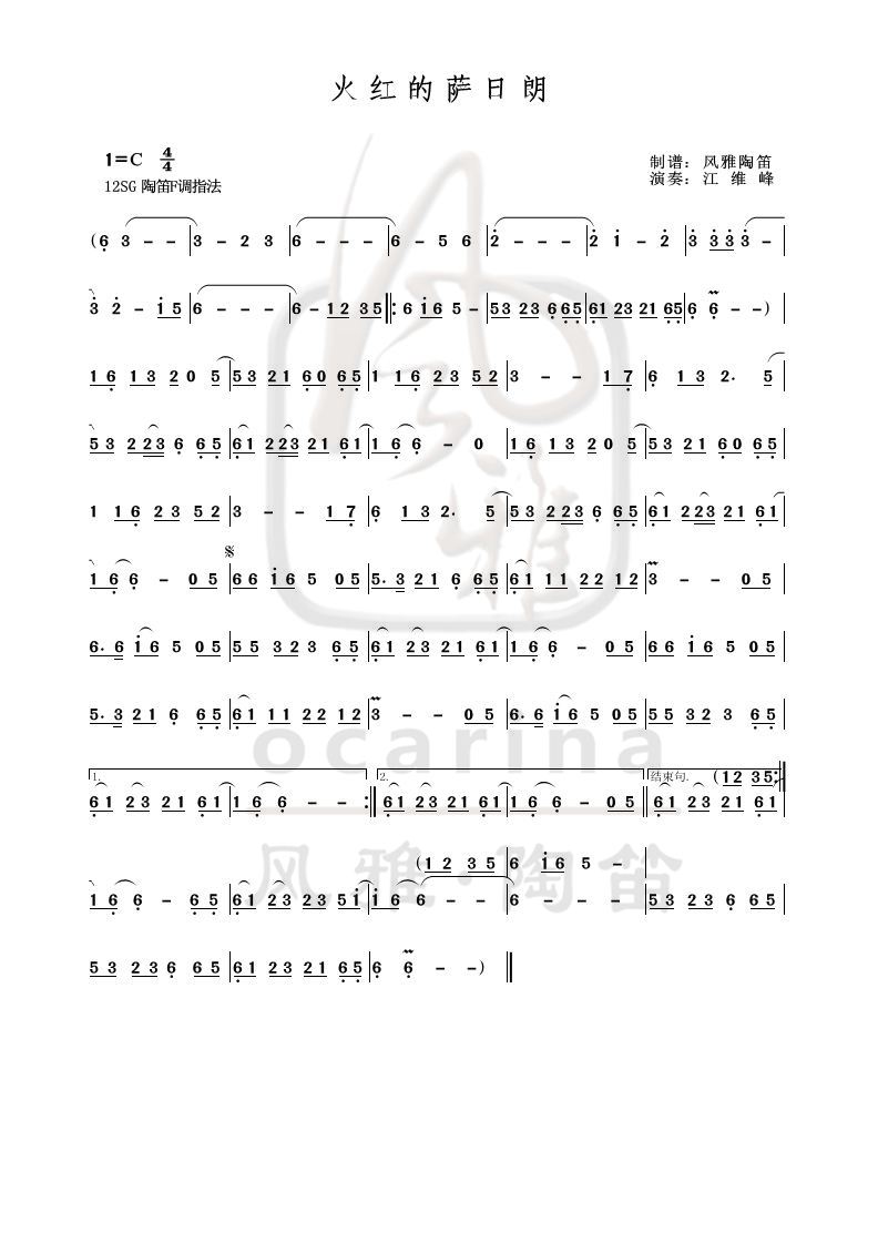 【火红的萨日朗】曲谱