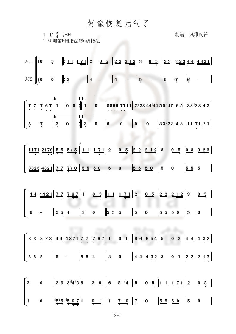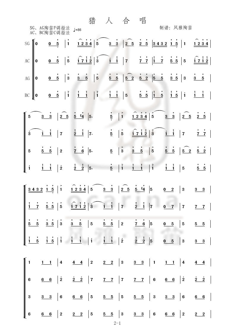 2016“风雅杯”全国陶笛重奏比赛参考曲谱