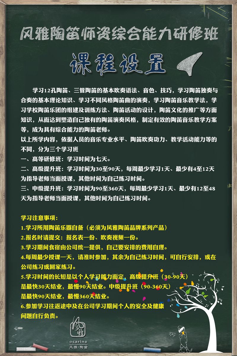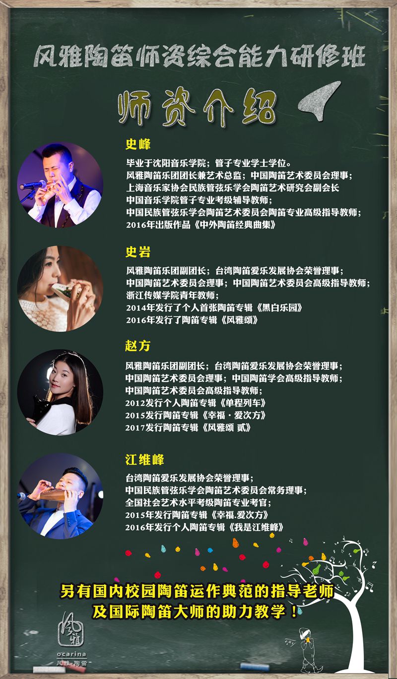风雅陶笛师资统合能力研修班详细内容报名表下载地址:学习班报名表.doc